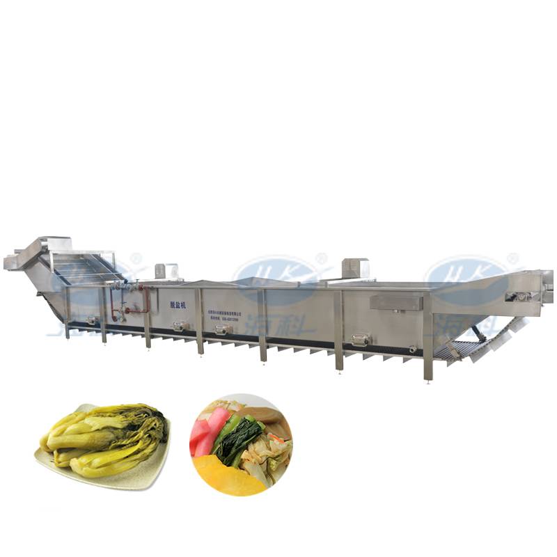 该机是开云在线网站在结合用户的工艺基础上,吸收国外先进技术,自主创新设计制造的自动化设备,特别适合用于酱菜行业的产品生产;把腌制过得蔬菜如萝卜、榨菜、青菜等,通过鼓泡、冲浪和漂洗作用把高盐度的腌制菜清洗干净,同时也把盐度降下来。
